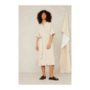 Kings Of Indigon Dion mekossa on normaali mitoitus, lyhyet hihat ja piiloitettu nappilista. Sivuhalkiot, käännettävät hihat ja vyötäröä korostava vyö antavat ilmettä mekolle. Mekossa on käytetty biohajoavia Corozo-nappeja. Kasvipohjaista Corozoa kutsutaan vegaaniseksi norsunluuksi.