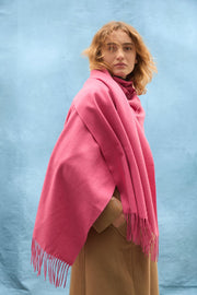 Klassisen tyylikäs huivi sataprosenttista villaa. Ajaton huivi on lämmittää kylmimmässäkin viimassa. Huivin raikas pinkin sävy piristää talvisen lookin hetkessä.