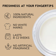 Kevyt ja helposti levittyvä voidemainen deodorantti imeytyy hyvin iholle ja antaa kokopäiväisen suojan hienhajua vastaan. Voiteen koostumus on pehmeän kermainen. Innovatiivinen luonnonraaka-aineiden sekoitus takaa täydellisen suojan ja hoitaa samalla kainaloalueen herkkää ihoa. Jännittävä tuoksu muodostuu mustapippurin ja sitruksien liitosta.