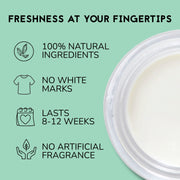 Kevyt ja helposti levittyvä voidemainen deodorantti imeytyy hyvin iholle ja antaa kokopäiväisen suojan hienhajua vastaan. Voiteen koostumus on pehmeän kermainen. Innovatiivinen luonnonraaka-aineiden sekoitus takaa täydellisen suojan ja hoitaa samalla kainaloalueen herkkää ihoa. Herkullinen greipin ja mintun tuoksu lisää raikkauden tunnetta ja virkistää.