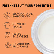 Kevyt ja helposti levittyvä voidemainen deodorantti imeytyy hyvin iholle ja antaa kokopäiväisen suojan hienhajua vastaan. Voiteen koostumus on pehmeän kermainen. Innovatiivinen luonnonraaka-aineiden sekoitus takaa täydellisen suojan ja hoitaa samalla kainaloalueen herkkää ihoa. Herkullinen appelsiinin ja bergamotin tuoksu lisää raikkauden tunnetta ja virkistää.