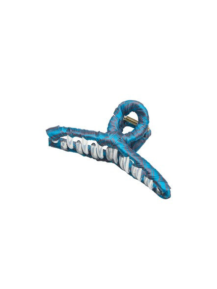Kaunis kangaspäällysteinen hiusklipsi Becksöndergaard Stripy Luster satiiniin kiedottu hainhammas kirkkaan sinisessä sävyssä. Syksyn sävyihin sopiv...