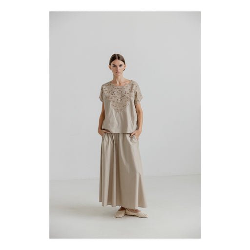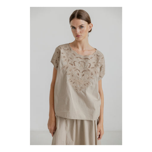 Project Aj117 Copenhagenin pitsi-aplikoitu paita Kesäisen kaunis Henna -paita on ommeltu luomupuuvillasta. Paidassa on näyttävä pitsikuvioitu aplik...