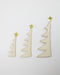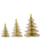 Kolmen kauniin kuusenmuotoisen paperikoristeen setti. Somista kotia jouluiseen asuun vaivatta näiden koristeiden avulla. Kuusien latvassa on kaunis kultainen tähti.