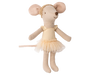 Tämä balleriina hiirulainen on puettu aprikoosin väriseen tutu-pukuun ja hänellä on päässään kaunis hiuskoriste. Balleriinan mukana tulee kaunis kartonkipakkaus.