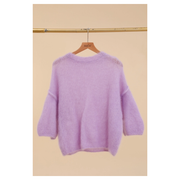 Ihanan muhkea ja lämmin kid mohair-seoksesta neulottu neule keväisessä lilanvärissä. Klassisen mallisessa ja hieman lyhyemmässä neulepaidassa on pyöreä kaula-aukko, pudotettu olkalinja ja 1/2 pituinen hiha.