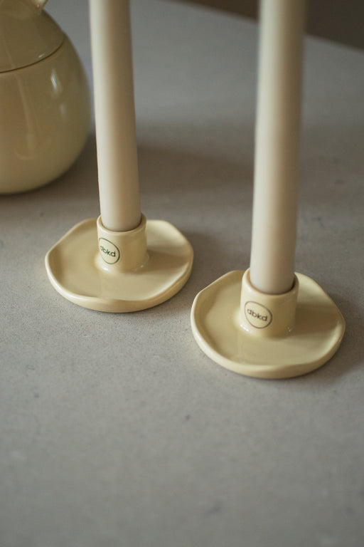 Keraaminen kynttilänjalka Orgaanisen muotoinen, mutta kuitenkin yksinkertaisen kaunis kynttilänjalka. Heleä keltaisen sävy näyttää kauniilt keväisi...