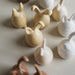 Keraamisen koristeen koko on: Ø 5 cm, kork. 7 cm. Hinta sisältää yhden tripletin, eli 3 hieman erimallista pupua.