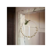 Anna kynttilänvalon tuoda loistetta ikkunalla upean House Docor -messinkisen kynttelikön avulla. Riippuva kynttelikkö on saanut messinkisen pinnoitteen ja siinä on kauniita mistelinoksa-koristeita. Tähtikoriste viimeistelee ilmeen.
