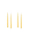 Kynttilän koko on: ø: 2,2 cm ja pituus 20 cm. Kauniisti palava kynttilä tuo iloa ja väriä kattauksiin. Tasaisesti palavien kynttilöiden materiaali on 100% parafiini ja sydänlanka on korkeatasoista puuvillanarua. Hinta sisältää yhden kynttilän.