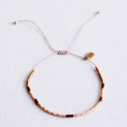 Ihanan kesäinen rannekoru näyttää kauniilta yksinään ja siihen on helppo yhdistää muita rannekoruja runsaammaksi kokonaisuudeksi. Rannekorussa on heleän luonnolliset sävyt ja se on helppo yhdistää asuihin.