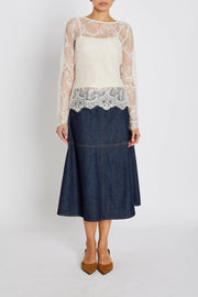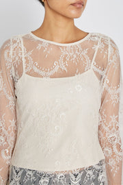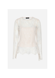 Bruuns Bazaarin pitsipusero on kevyt ja elegantti pusero, jossa on normaali istuvuus, herkkää ja erittäin kaunista pitsiä. Läpikuultava kangas lisää hienostuneen ja naisellisen ilmeen. Yhdistä se yksinkertaisen yläosan ja housujen kanssa arkeen, tai hameen ja korujen kanssa juhlaan.