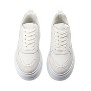 Copenhagen Studiosin Leather Mix-sneaker klassisen valkoisena. Matalaprofiilinen tennari on sopivan basic-mallinen olematta kuitenkaan tylsä. Mokkanahkaiset yksityiskohdat antavat kontrastia. Nahkakengän sisäosa on myös ommeltu pehmeästä nahasta.