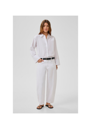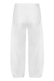 Modernit ja trendikkäät farkut, joissa yhdistyvät korkea vyötärö ja näyttävä barrel leg lahje. Muotoiltu siluetti tuo asuun ryhtiä ja tekee farkuista ajankohtaisen valinnan niin arkeen kuin tyylikkäämpäänkin pukeutumiseen.