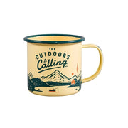 Hauskassa emalimukissa on teksti “The outdoors is calling”. Ota muki mukaan retkille tai käytä vaikka hammasmukina muistuttamssa tulevista pöyräretkistä. Ihana lahjaidea retkeilijälle!