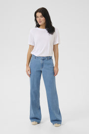 Leveälahkeiset ja hyvin laskeutuvat housut sopivat niin töihin kuin skandinaaviseen kaupunkityyliinkin, sekä rentoon loma-lookiin. Käytä housuja niin tennareiden kuin sandaalien tai ballerinojenkin kanssa. Yläosaksi voit yhdistää vaikkapa T-paidan, jakun tai neuleen.